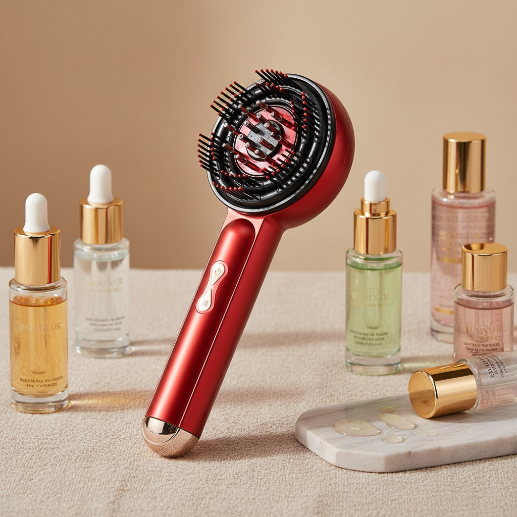 La lumière rouge (LED) est reconnue pour stimuler l’activité des follicules pileux, renforcer les racines et améliorer la santé globale du cuir chevelu.