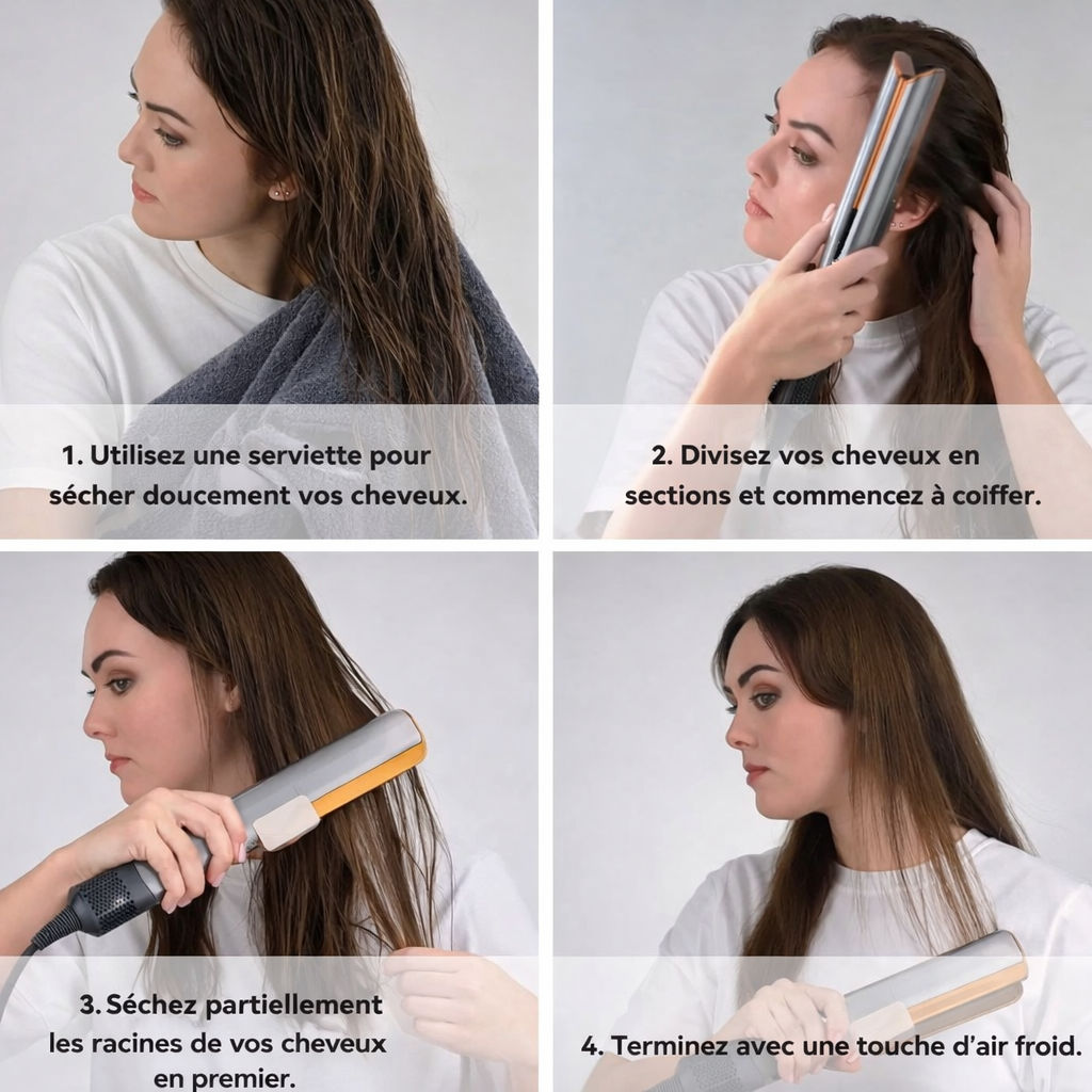 Contrairement aux lisseurs traditionnels, cet appareil utilise uniquement de l'air chaud pour sécher et lisser vos cheveux simultanément. Cette technologie innovante préserve la santé de vos cheveux en évitant le contact direct avec des plaques chauffantes, réduisant ainsi les dommages thermiques.